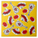 Whimsical design drawn in a retro style featuring souvenirs from a Spanish holiday; a wrought iron guitar, lacy fan and red rose. A customisable design in black, white, red and golden yellow for you to personalise with your own text, images and ideas. An original digital art image.