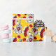 Whimsical design drawn in a retro style featuring souvenirs from a Spanish holiday; a wrought iron guitar, lacy fan and red rose. A customisable design in black, white, red and golden yellow for you to personalise with your own text, images and ideas. An original digital art image.