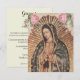 This is a beautiful traditional Catholic religious image of the Blessed Virgin Mary, Our Lady of Guadalupe with pink roses. All text and fonts on the back can be modified.