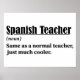 Spanish Teacher, like a normal teacher, just much cooler. Funny definition for Spanish teachers women and men. Awesome present idea for Español educator mum, dad, sister, brother, son, daughter, uncle, aunt, grandma, grandpa, friend, coworker, wife, husband...