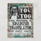 Spanish Translator vintage advertisement in turquoise, aqua, red and black. Arty, funny, colourful and fun, it makes a great gift and will surely bring smiles and laughter to the recipient.