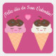 This sweet Spanish language sticker is perfect for wishing someone a Happy Valentine's Day! The design features two ice cream cones and the words "Feliz diá de San Valentín" written in Spanish across the top, which means "Happy Valentine's Day" in English. Perfect for the sweetest person in your life!s