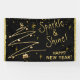 A Modern Gold and Black, Happy New Year Hanging Banner with text: Sparkle & Shine designed for your Holiday New Years Eve Party. Designed on a black background, with gold coloured Christmas Tree, Snowflakes and Stars. Available with matching party accessories. This Banner is also available in Gold and White.