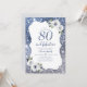 Faux sparkle silver blue glitter "80 and fabulous" script with dusty blue and white floral, elegant and stylish, great 80th birthday party invitations.