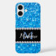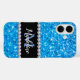 Sparkle Blue Glitter & Gems with Name and Monogram Case-Mate iPhone Case