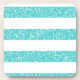 Trendy and fun Sparkle Glitter Look Stripes Coaster Set. This design features a sparkly faux glitter look striped pattern in turquoise. Add text to this design to give it a personal touch.