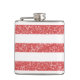 Trendy and fun Sparkle Glitter Look Stripes Flask. This design features a sparkly faux glitter look striped pattern in red. Add text to this design to give it a personal touch.