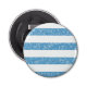 Trendy and fun Sparkle Glitter Look Stripes Magnet Bottle Opener. This design features a sparkly faux glitter look striped pattern in blue. Add text to this design to give it a personal touch.