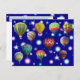 Hot air balloons dance with pink and blue stars on a navy blue backdrop.