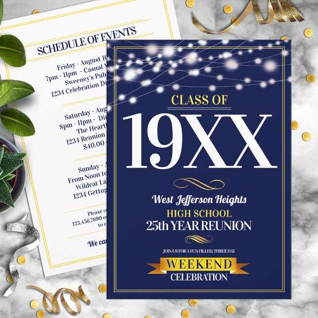 Sparkle Lights School Colours Class Reunion Invitation