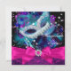 Masquerade Party Invitation. Elegant teal & purple mask & pretty diamond bow. Please Note: All flat images, they do not have real jewels or bow!