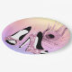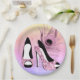 These girly paper plates are perfect for Sweet 16 or Quinceañera parties or any event celebrating the fashionistas. Pink glitter pumps with pink peacock feather and ombre background.
