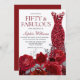 Sparkle Red Dress & Roses 50th Birthday Shimmer Invitation