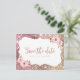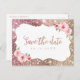 Faux sparkle rose gold glitter frame and "save the date" script with blush pink floral, elegant and stylish. Great save the date postcard for modern wedding, romantic wedding, and botanical garden wedding.
