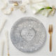 Beautiful ornate silver heart over sparkling silver glitter print on these lovely paper plates celebrating their milestone twenty fifth Wedding Anniversary. Text is ready for you to customise with their names and dates.