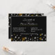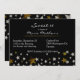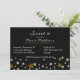 Elegant black Sweet 16 birthday party invitation, with graphics of silver tone and golden glittery stars, across the bottom. Personalise the white text for your event. Lovely invitation for the birthday girl's very special day.