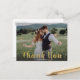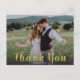 A gold coloured brush script thank you message and dark gradient overlays your favourite wedding photo note of gratitude. Use the blank space on back to hand write a personal message to friends and family. This design can be adapted to either landscape or portrait photo layouts.