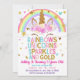 Sparkles and Gold Unicorn Rainbow Birthday Invitation