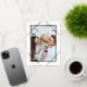 Personalise this Christmas holiday card featuring real gold foil (Front side only) to accompany your own personalised photo adorned with gold sparkle dots and snowflakes. On the back, script typography on a black and white background makes for a simple yet elegant style.