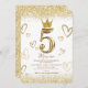 Sparkles Gold Princess Crown 5th Birthday Invitation