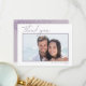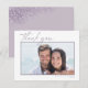 A handwritten, signature font combined with geometric frames, sparkly backgrounds and lush florals are used in this collection to set a warm and intimate tone for your wedding. The wedding 'Thank You' card shown here, with it's simple framed photo on a white background, also features your names, wedding date and personal thank you message on the reverse with a sparkly mauve background. Search ID889 to see all the products in this wedding set.