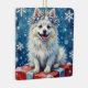 Bring sparkling holiday cheer with this beautiful American Eskimo Dog design! This high-key illustration features a fluffy 'Eskie' sitting like a prized present on a festive red cushion, complete with a glittering tinsel halo and soft, bright lights. Perfect for American Eskimo owners and fans who love elegant, snow-white dogs and bright, cheerful Christmas aesthetics. Ideal for dazzling ornaments, stylish winter apparel, and gifts that bring a clean, crisp sparkle to the holiday season.