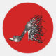 Sparkling Black Stiletto on Red Classic Round Sticker