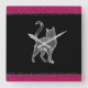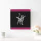Sparkling giraffe wall clock. This design is a truly magical design featuring a glittering silver cat set against strong purples and shades of pink. Bright, bold colours with the option to personalise. Perfect gift for cat lovers lover or some who loves colourful designs.