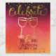 Perfect for any celebration! An ombre of purples, reds, pinks, and orange colours with gold stars sparkling in the background, with two shimmering gold wine glasses cheering to your celebration.
