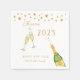 Personalised Gold and white popping Champagne bottle and glasses toasting to a New Year Party napkins.