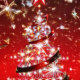A vibrant phone case design featuring a sparkling Christmas tree adorned with shimmering stars. The tree, outlined in white, stands against a rich red background, creating a festive atmosphere. The star atop the tree glows brightly.