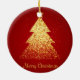 Beautiful Christmas round Ornament featuring beautiful golden sparkling Christmas tree and star on red background give it a festive look. . Perfect holiday gift for family or friends