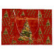 Joyful and elegant Merry Christmas gift bag with beautiful green Christmas tree decorated with colourful ornaments and sparkling lights over red background.