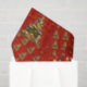 Joyful and elegant Merry Christmas tissue paper with beautiful green Christmas tree decorated with colourful ornaments and sparkling lights over red background.