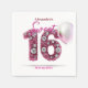 Celebrate in style with this customisable Sweet 16 paper napkin! The design features a dazzling "16" embellished with pink and white gemstones, adding a luxurious sparkle to the occasion. Above it, "Sweet" is elegantly scripted, complementing the chic aesthetic. A festive pink balloon enhances the celebratory vibe, while the customisable name and date ensure this keepsake is uniquely yours. Perfect for making every detail of your milestone event shine!