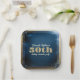 This blue plates features gold glitter flecks. The deep blue background contrasts with the gold accents. The glitter catches the light, adding a touch of sparkle. The combination of blue and gold sets a luxurious tone for any event.
