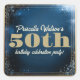 This blue stickers features gold glitter flecks. The deep blue background contrasts with the gold accents. The glitter catches the light, adding a touch of sparkle. The combination of blue and gold sets a luxurious tone for any event.