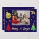 This design features a shinny green gradient Christmas tree, jolly leaf, Christmas ball and snowflakes with a vibrant text "Merry & Bright" with one photo of your choice. This card is the perfect choice to spread joy this Christmas! Personalise it effortlessly.