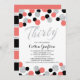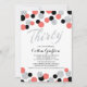 Sparkling Glitter Confetti | 30th Birthday. Silver, Coral and Black confetti tossed around on this trendy thirtieth birthday invitation. The word "Thirty" in silver digital glitter. If you would like a colour change please email paula@labellarue.com before you place an order and a new template will be made. Be sure to pick your favourite card stock to have it printed on and fun shapes too!