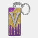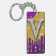 Sparkling Letter V With Gold Glitter Drip Key Ring