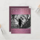Show off your engagement photo or a favourite snapshot with these save the date cards. They feature your horizontal or landscape orientated photo set against a cranberry to maroon coloured background accented by an illustration of sparkling string lights. Your information appears below the photo in elegant black print lettering.