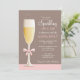 Invite your family and friends to meet your sweet new baby girl at a "Sip and See" open house with this fun invitation featuring a "sparkling" champagne flute of bubbly, tied up prettily with a little pink bow. A great way to have a set time and date for introducing baby to everyone at once. Perfect for a second child or in lieu of a traditional baby shower.