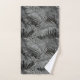 Turn the glam up a notch with this unique tropical print of overlapping palms leaves in a seamless pattern that adds a little sparkle and depth of shadows to the lush foliage. This striking bath towel design set is glittering shades of silver on a dark charcoal background. Search ID831 to see other colour options and additional products with this design.