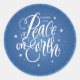 The words Peace on Earth have been lettered by hand and lay on a richly textured background with sparkles. These sticker coordinate with the Sparkling Peace on Earth collection by Laura Bolter Design.
