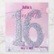 Add instant glam to your celebration with this stunning Sweet 16 wine label featuring a 3D-style "16" encrusted with shimmering silver studs on a soft pink background. A flowing pink script spells out Sweet across the top, while the name and date stand out in bold magenta below. Every detail is fully customisable—from the name to the party date—making it perfect for creating a personalised, photo-ready touch for your teen’s big day.