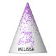 Sparkling Purple Glitter White Any Age Birthday Party Hat