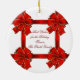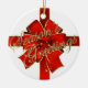 A Digitalbcon Images Design featuring a Christmas Red, White and Gold colour theme with a variety of custom images, shapes, patterns and styles in this one-of-a-kind "Sparkling Red Bow Season's Greetings" Christmas Ornament. This colourful and attractive design comes complete with customisable text lettering on the reverse as well as changeable background colour to make this the perfect accessory for your holiday gift giving this festive season. COMPLETE YOUR CHRISTMAS SHOPPING WITH MATCHING GIFT IDEAS FROM THE CHRISTMAS RED BOW COLLECTION AVAILABLE IN THIS STORE.