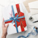 Sparkling Red Bow Seasons Greetings Wrapping Paper