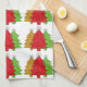 Sparkling red gold green Christmas tree snowflake Tea Towel