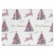 Present your gifts beautifully in this charming pink Christmas gift bag! It features a delightful, soft-hued design with pastel pink and blue Christmas trees, enchanting pale pink sparkling reindeer leaping across the landscape, and delicate gold glittering stars. The "Merry Christmas" greeting is carefully woven throughout in shimmering gold. This bag offers a modern, effortless touch of holiday glamour for any special present.